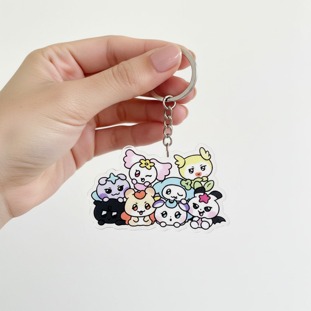 Ces adorables porte-clés sont fabriqués en acrylique, un matériau léger qui conserve parfaitement sa forme et ses détails. Idéaux pour les sacs, les clés, les pochettes pour cartes photo ou les dragonnes de lightsticks.